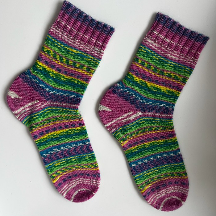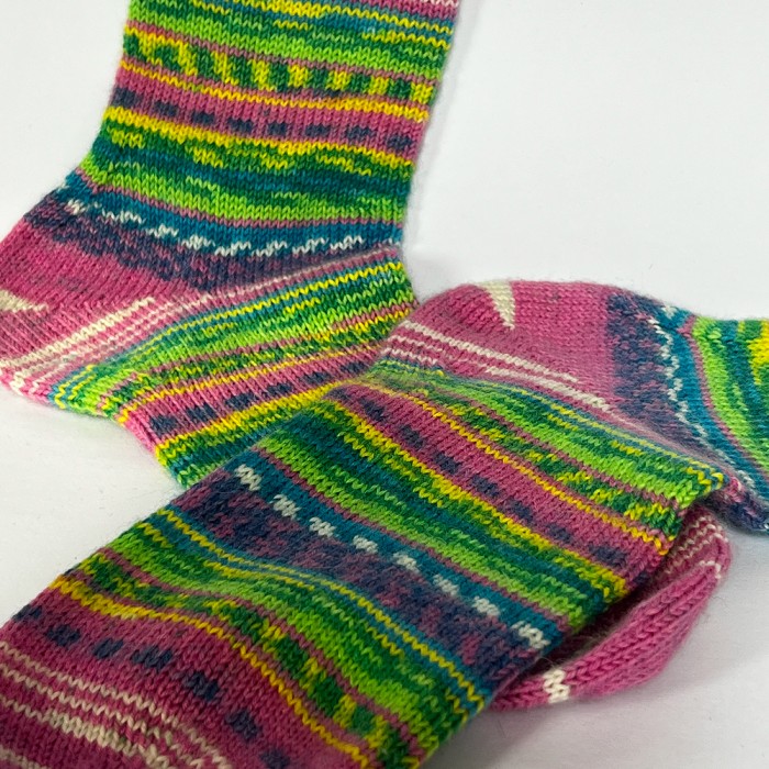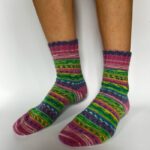 Rankų darbo „Summer Evening“ kojinės spinduliuoja šiltomis, minkštomis spalvomis – suteikia jaukumo ir tampa maloniu tavo stiliaus akcentu.
