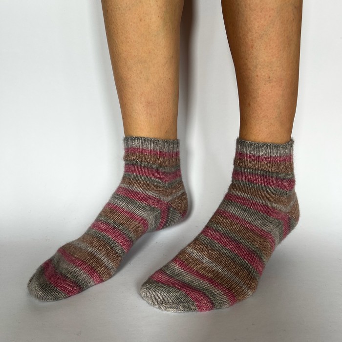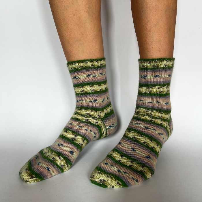 Rankų darbo „Summer Morning“ kojinės spinduliuoja šiltais atspalviais ir jaukumu – pripildo energijos, primena gaivų rytą ir tampa šviesiu tavo stiliaus akcentu.
