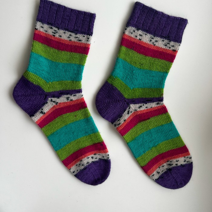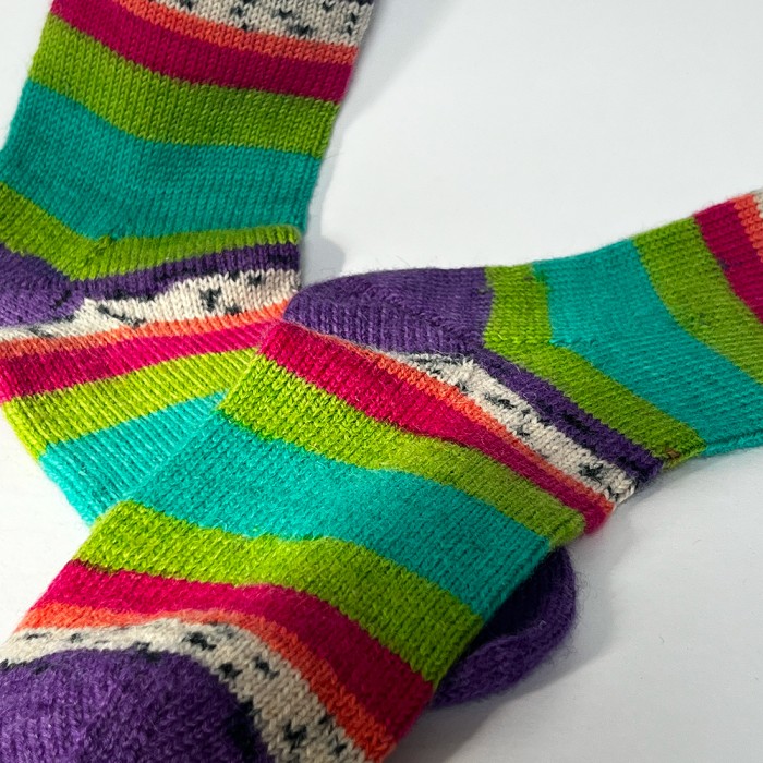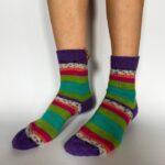 Rankų darbo „Happy Circus“ kojinės džiugina ryškiomis spalvomis ir šiluma – suteikia energijos net pilkiausią dieną ir tampa tikru akcentu tavo stiliuje.
