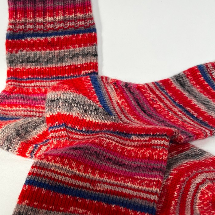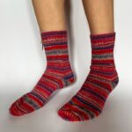 Rankų darbo „Red Sunset“ kojinės spinduliuoja intensyviomis spalvomis ir jaukumu – pripildo energijos ir tampa ryškiu tavo stiliaus akcentu.