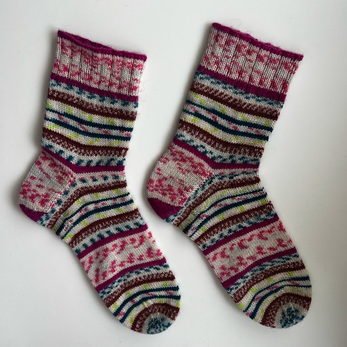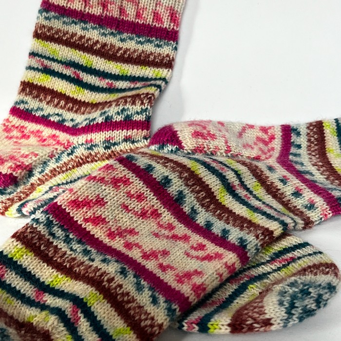 Rankų darbo „Pink Soup“ kojinės džiugina pastelinėmis spalvomis ir komfortu – suteikia šilumos kiekvienai dienai ir tampa mielu tavo stiliaus akcentu.