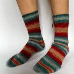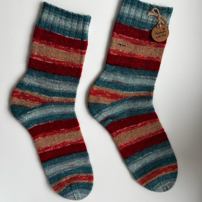Rankų darbo „Cranberry Jam“ kojinės džiugina giliomis raudonų uogų spalvomis ir jaukumu – pripildo energijos bei tampa gardžiu tavo stiliaus akcentu.