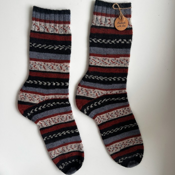 Rankų darbo „Nutty Flavour“ kojinės kerinčiai jungia žemės tonus ir patogumą – suteikia harmonijos kasdienai ir tampa skoniu tavo stiliaus akcentu.